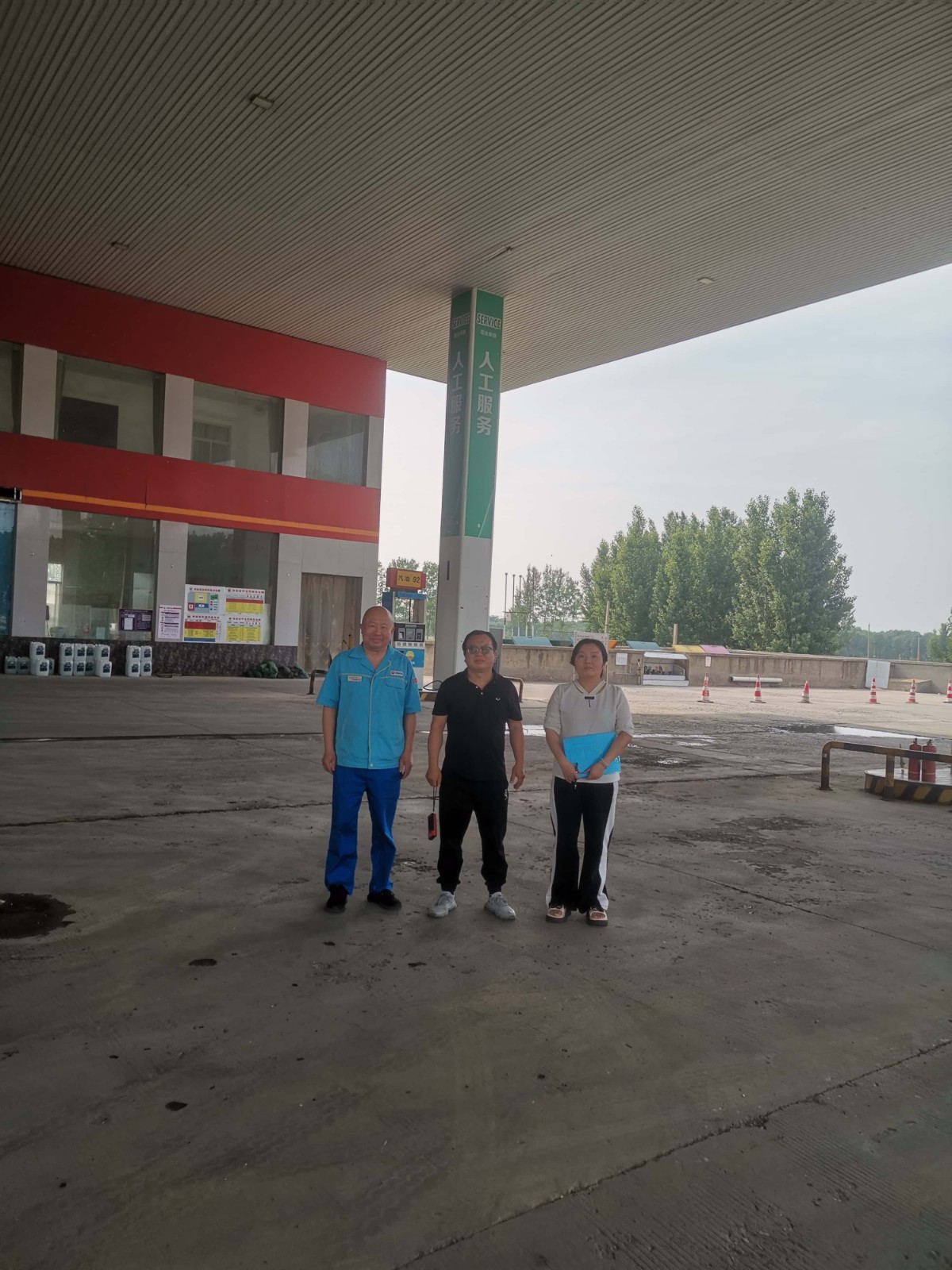 項(xiàng)目簡(jiǎn)介 | 中國(guó)石油天然氣股份有限公司河南開封連霍高速開封東加油站位于開封市祥符區(qū)杜良鄉(xiāng)106國(guó)道與310高速口。自上次取得危險(xiǎn)化學(xué)品經(jīng)營(yíng)許可證三年來,該加油站未發(fā)生過安全生產(chǎn)事故,站內(nèi)工藝、設(shè)備設(shè)施及周邊環(huán)境均未發(fā)生變化。 該加油站占地面積約12.1畝,現(xiàn)有員工4人,其中安全生產(chǎn)管理人員1人。站房設(shè)在站區(qū)西部,罩棚布置在站房東側(cè),在罩棚下設(shè)12臺(tái)加油機(jī)(其中4臺(tái)加油機(jī)已停用),分三排平行布置,安裝在加油島上;靠東側(cè)中間加油島上設(shè)一臺(tái)尿素加注機(jī),已停用;罐區(qū)設(shè)在站房北側(cè),有5座單層鋼制油罐,設(shè)防滲罐池,埋地設(shè)在非行車道下,其中50m3汽油罐1座、25m3汽油罐1座、50m3柴油罐3座;密閉卸油口設(shè)置在罐區(qū)東側(cè)。根據(jù)GB50156-2021《汽車加油加氣加氫站技術(shù)標(biāo)準(zhǔn)》表3.0.9加油站的等級(jí)劃分,該站油罐總?cè)莘e為50×1+25×1+50×3×1/2 =150m3(柴油折半計(jì)入),屬于二級(jí)加油站。該站采用潛泵式加油工藝,設(shè)有加油、卸油油氣回收系統(tǒng)。 加油站東側(cè)為興漢大道(主干路)、架空電力線(H=10m,有絕緣層),西側(cè)為農(nóng)田,南側(cè)為汽車修理部(散發(fā)火花地點(diǎn))、農(nóng)田,北側(cè)為魯青石化衛(wèi)生間(三類保護(hù)物)、魯青石化洗車機(jī)(三類保護(hù)物)、架空電力線(H=4m,有絕緣層)、農(nóng)田。站內(nèi)汽油、柴油工藝設(shè)備與站外建構(gòu)筑物的安全間距均符合GB50156-2021的要求。該加油站站內(nèi)設(shè)施的防火間距滿足要求。 | |||